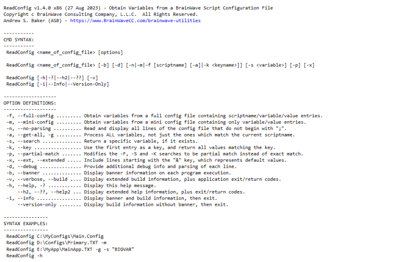 Top 4 Download periodically updates software information of BrainWave ReadConfig 1.4.0.180 full version from the publisher, but some information may be slightly out-of-date.